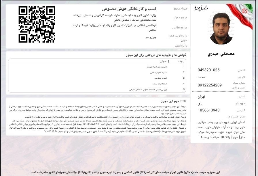 مجوزها...با خیال راحت از حیوک خرید کنید...(همه مجوزها قابل استعلام میباشد)